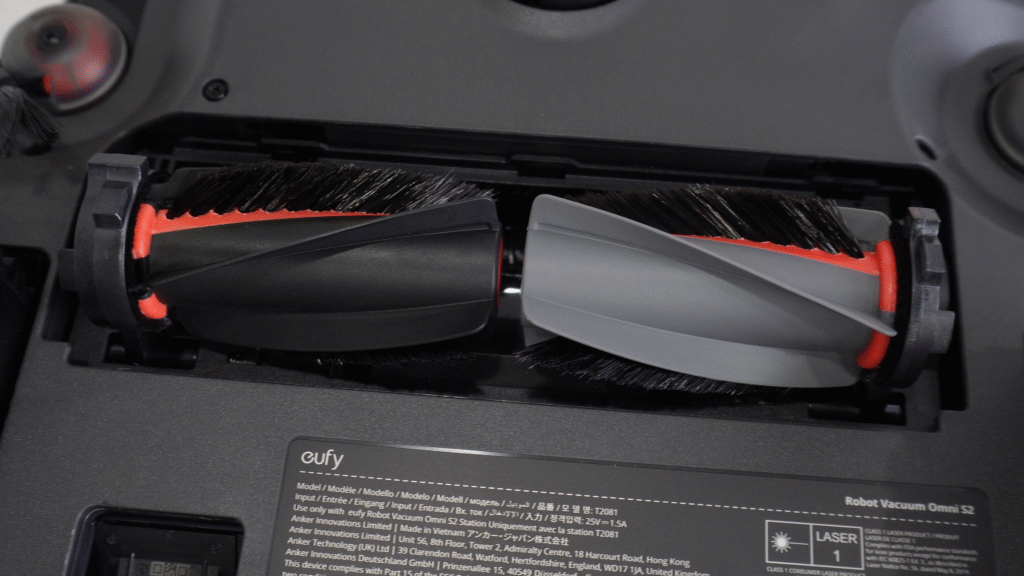 The dock and mopping system are where the S2 really shines. The station automatically washes and dries the mop, and our LVP floors consistently came out looking great with no visible streaking. The roller mop looked nearly new after cleaning cycles, and eufy extended it as far as possible to maximize coverage. If we’re not mistaken, it’s the longest mop roller we’ve tested. The dock itself is one of the best eufy has made, and the built-in touchscreen adds to the premium feel, even if its usefulness is limited when child lock is enabled.